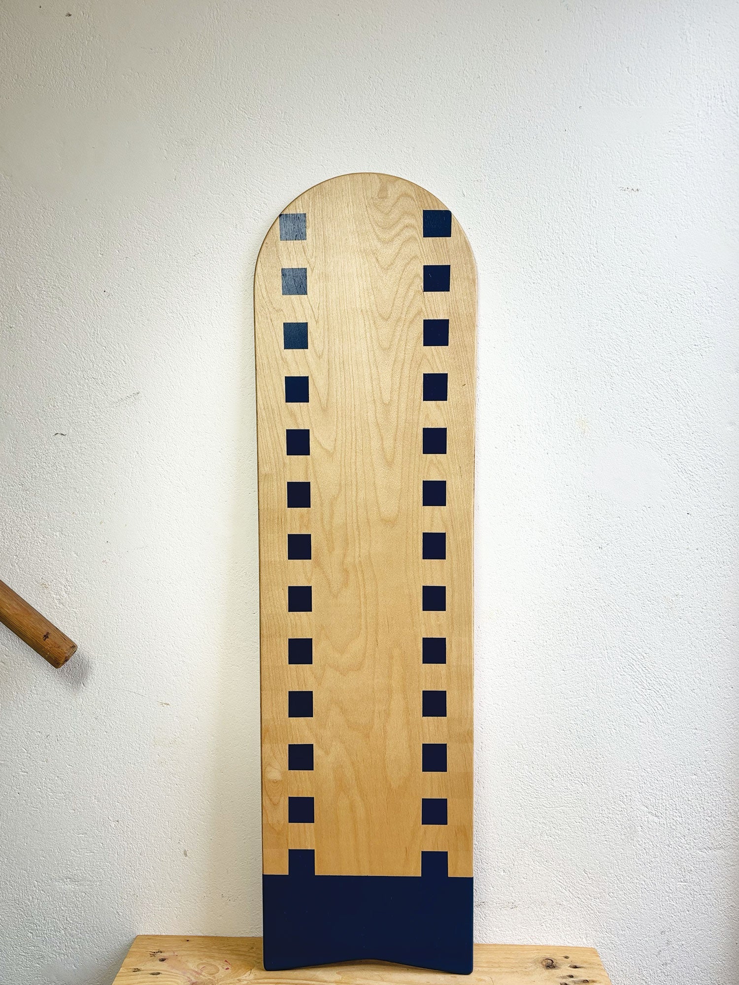 All our boards are different and have individual characteristics. Open knots in the wood have been repaired with wooden plugs, and nose curves will vary. Wood grain will be visible.